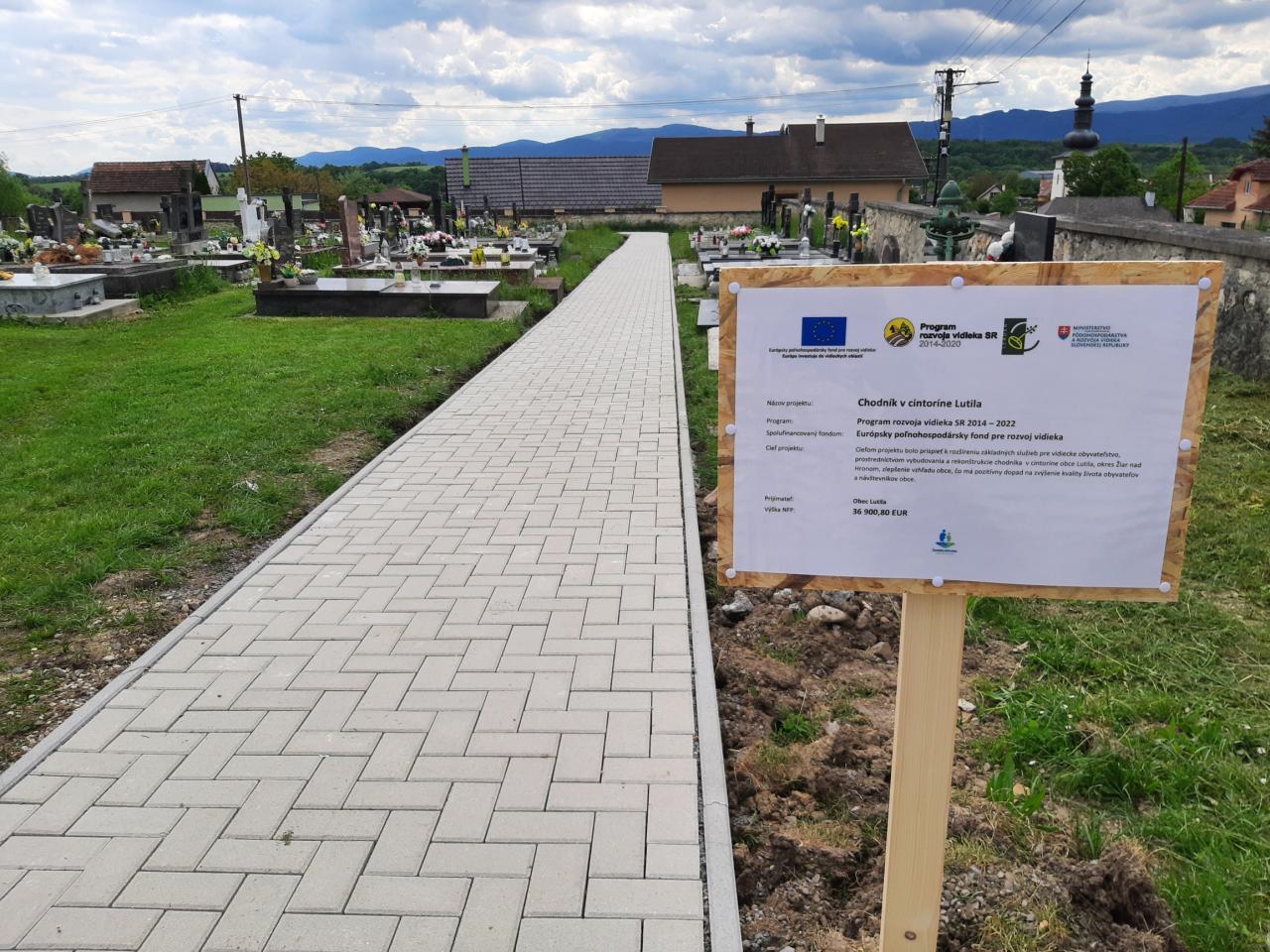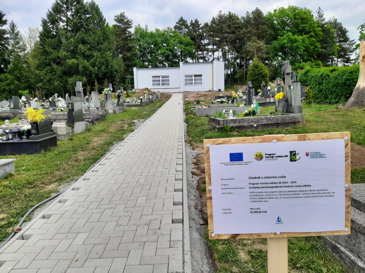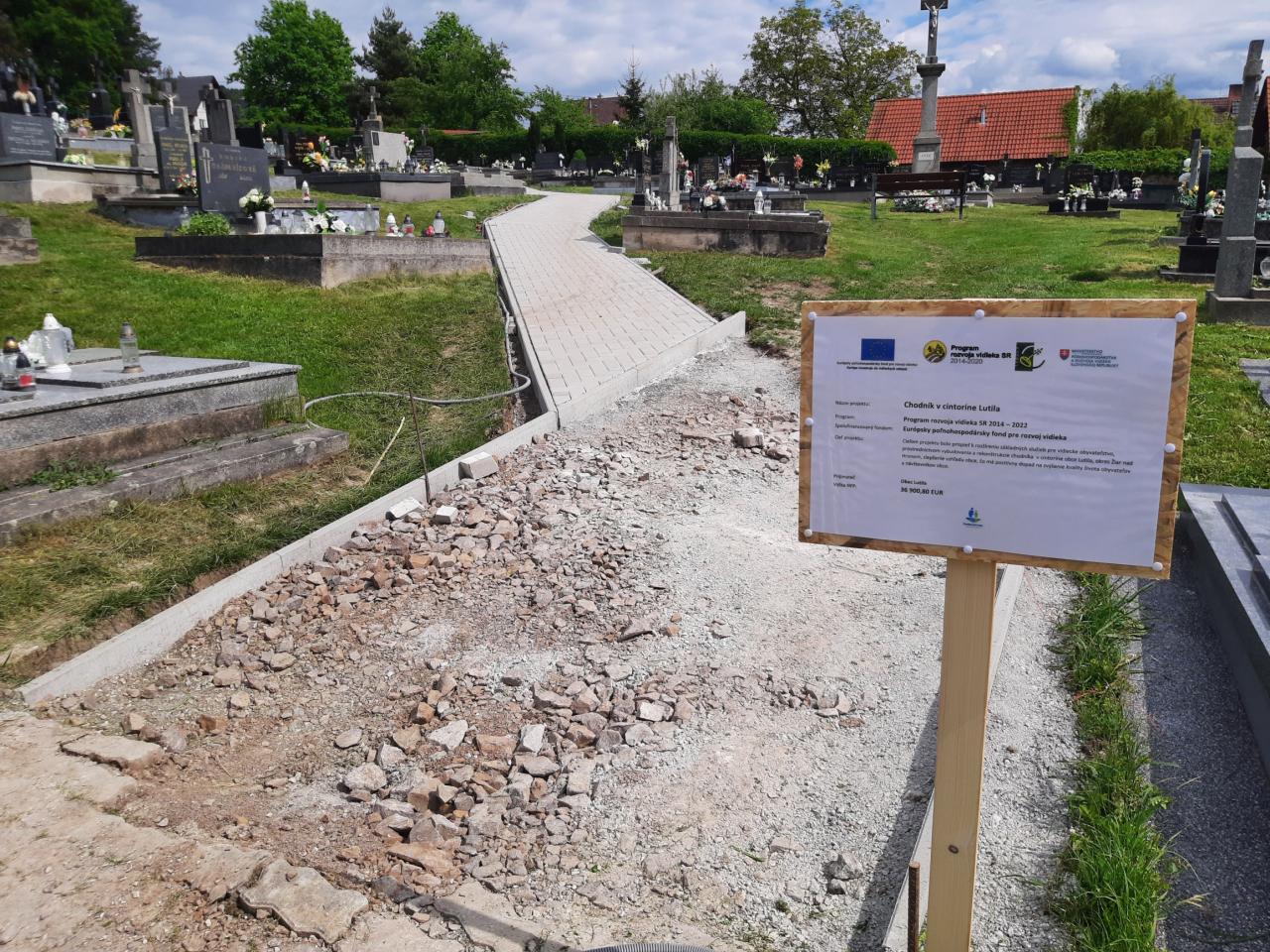 V období od marca 2025 zhotoviteľ Metrostav DS, a.s. zrealizoval dielo a odovzdal ho investorovi koncom mája. Obec Lutila teší, že môže dať do užívania všetkým občanom aj návštevníkom pietneho miesta chodník, ktorý veríme bude prispievať nielen k ľahšiemu pohybu po cintoríne pre všetkých návštevníkov, a najmä pre seniorov používajúcich „chodítko“ prípadne invalidný vozík, k lepšiemu prístupu k hrobovým miestam, ale zároveň aj k skrášleniu a skultúrneniu prostredia v ktorom žijú naši občania.