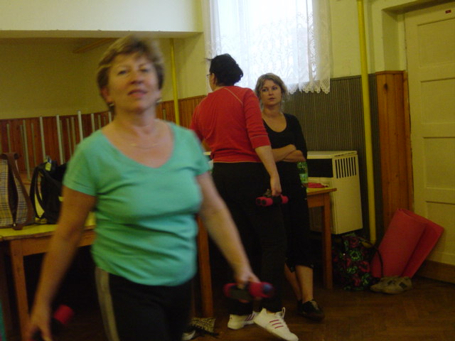 Pohľad do veľkej sály v KD na cvičenky (v popredí p. Kvetka Hrčková)