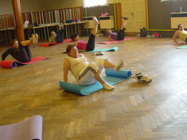 Pohľad do sály na dvičenky (v popredí p. Eva Šurková)