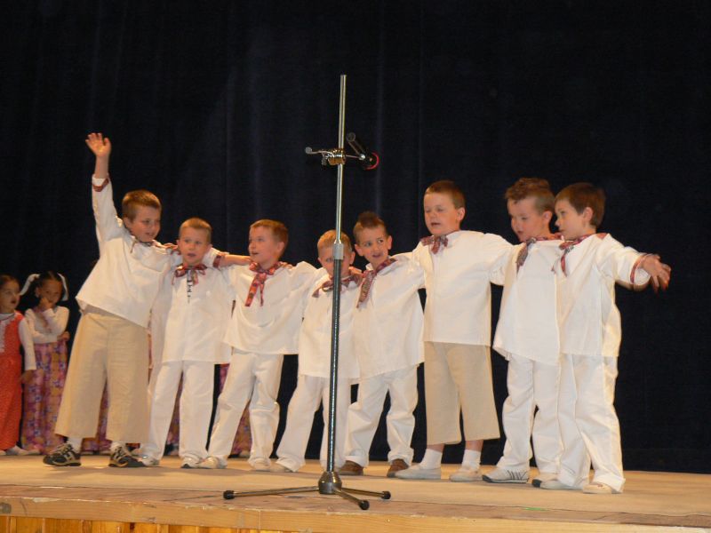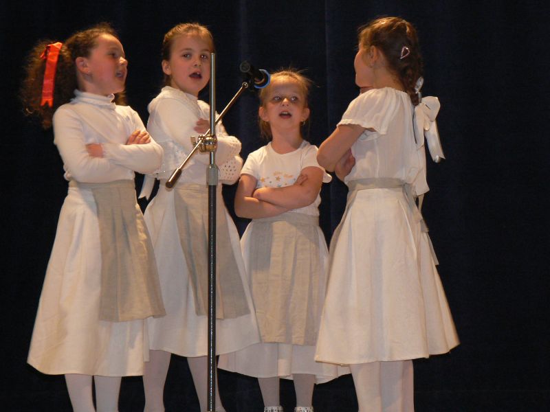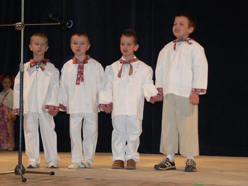 Kľaňačka účinkujúcich detí základnej školy - Silvia Búgelová, Viktória Šarkoziová, Mirka Mokrošová, Andrej Nárožný, Nikolas Hromádka