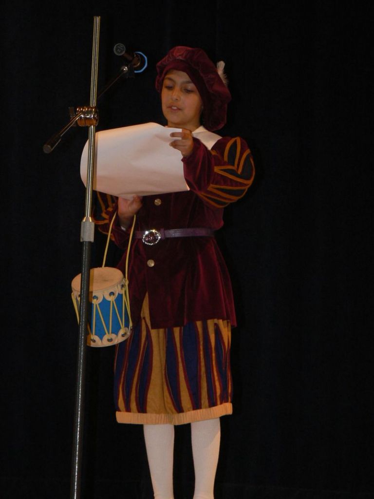 Viki Šarkoziová v scénke ako kráľovský hlásnik