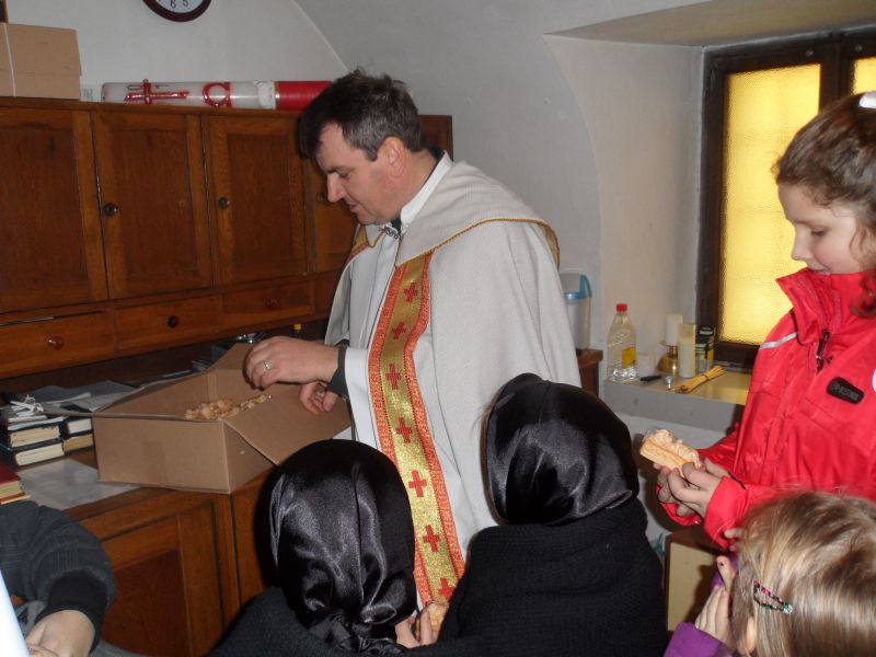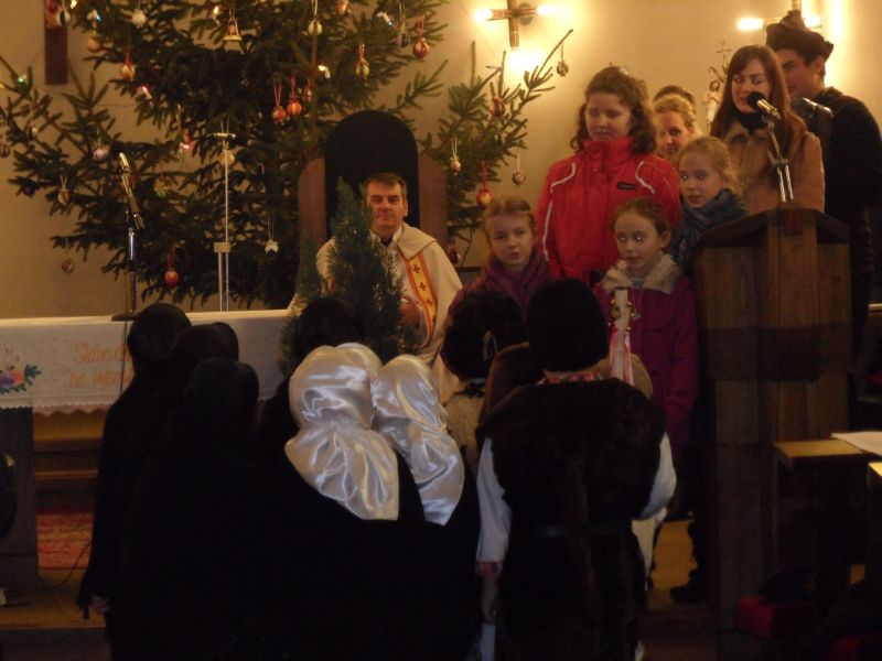 Nakoniec slávnosti rozdal pán farár deťom malého Ježiška v jasličkách, ako pamiatku na túto slávnosť