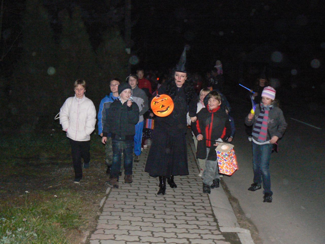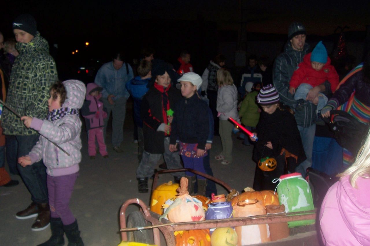 Tekvice sme uložili do káry a celý sprievod osvietený lampami sa presunul z dvora školy pred kultúrny dom, kde na deti čakali šišky od lienok, sladké koláčiky, keksíky a banány od tety Adriany Valentovej a vynikajúci čas im navaril ujo Jožko Jančok.