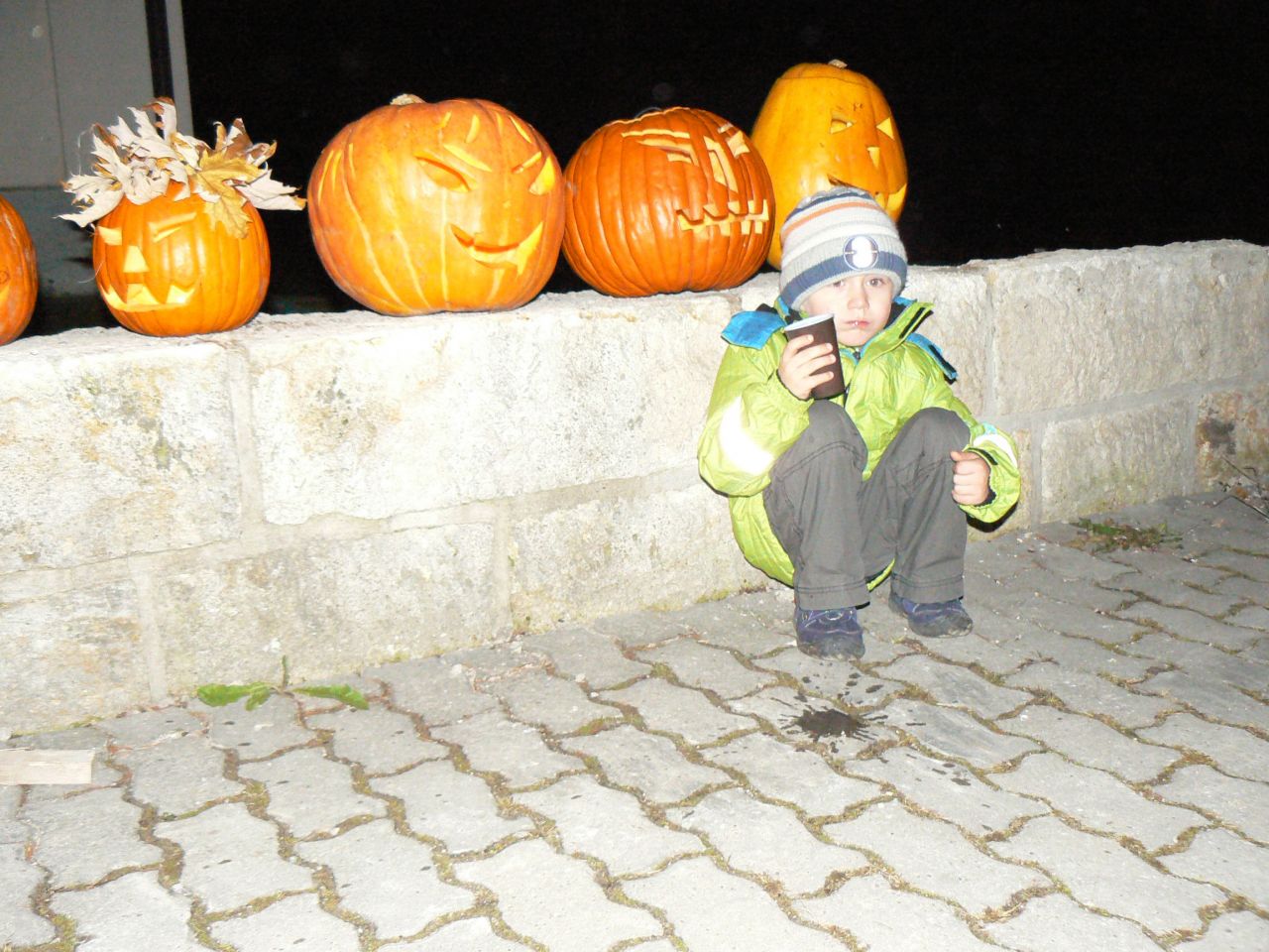 Vyrezané tekvice na múriku pri kultúrnom dome a pred nimi nebojácny JurkoAutor: Janka Knoppová