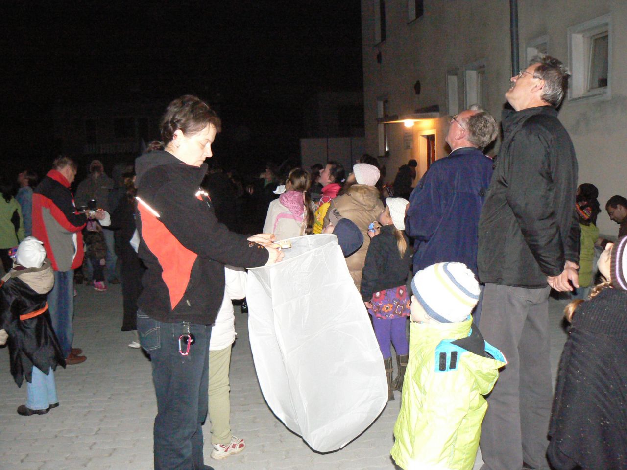 Pohľad všetkých prítomných na vypustené balóny šťastia.Autor: Janka Knoppová