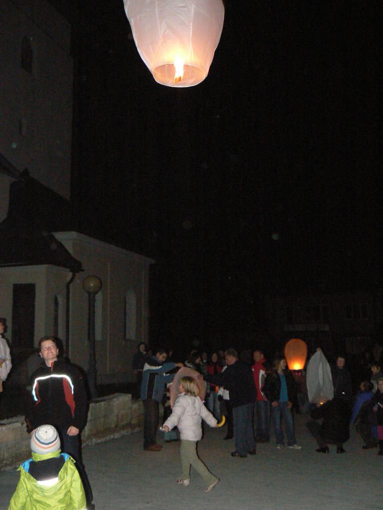 Prechádzajúci lampiónový sprievod Štefánikovou ulicou smerom ku kultúrnemu domu